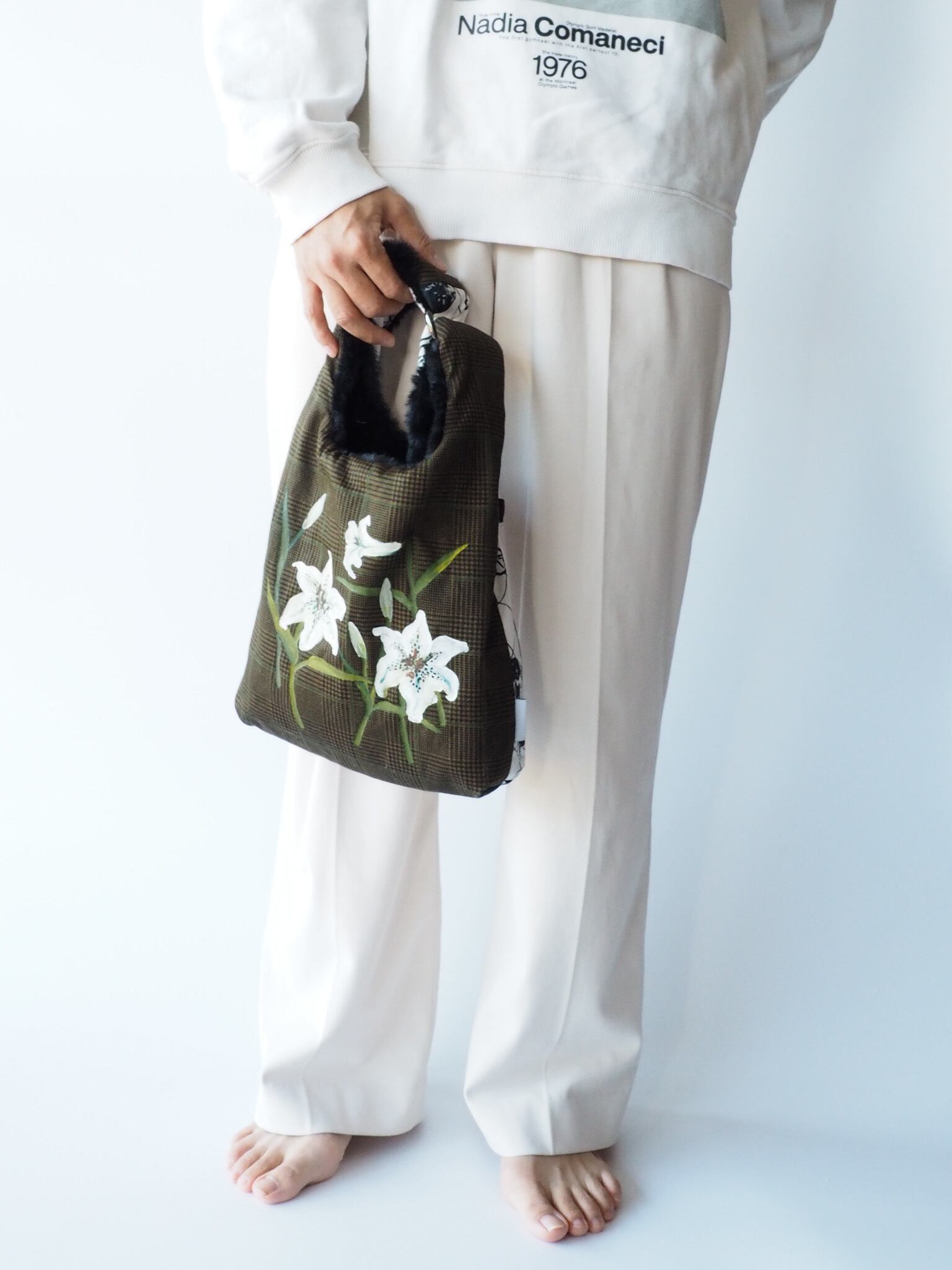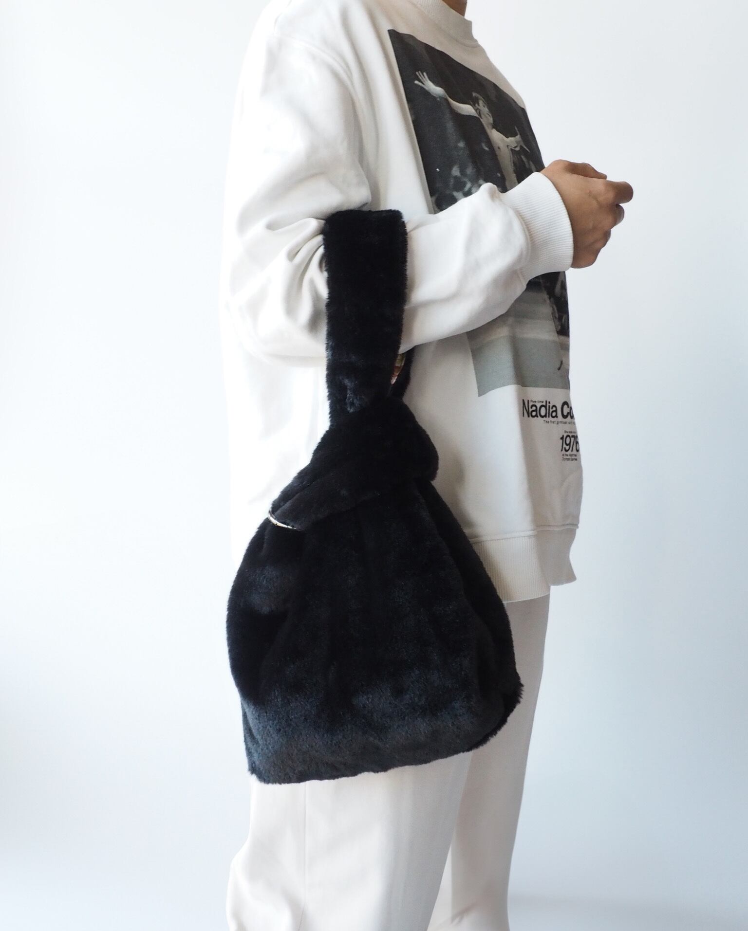 2way リバーシブル Fur bag -黒/lily-